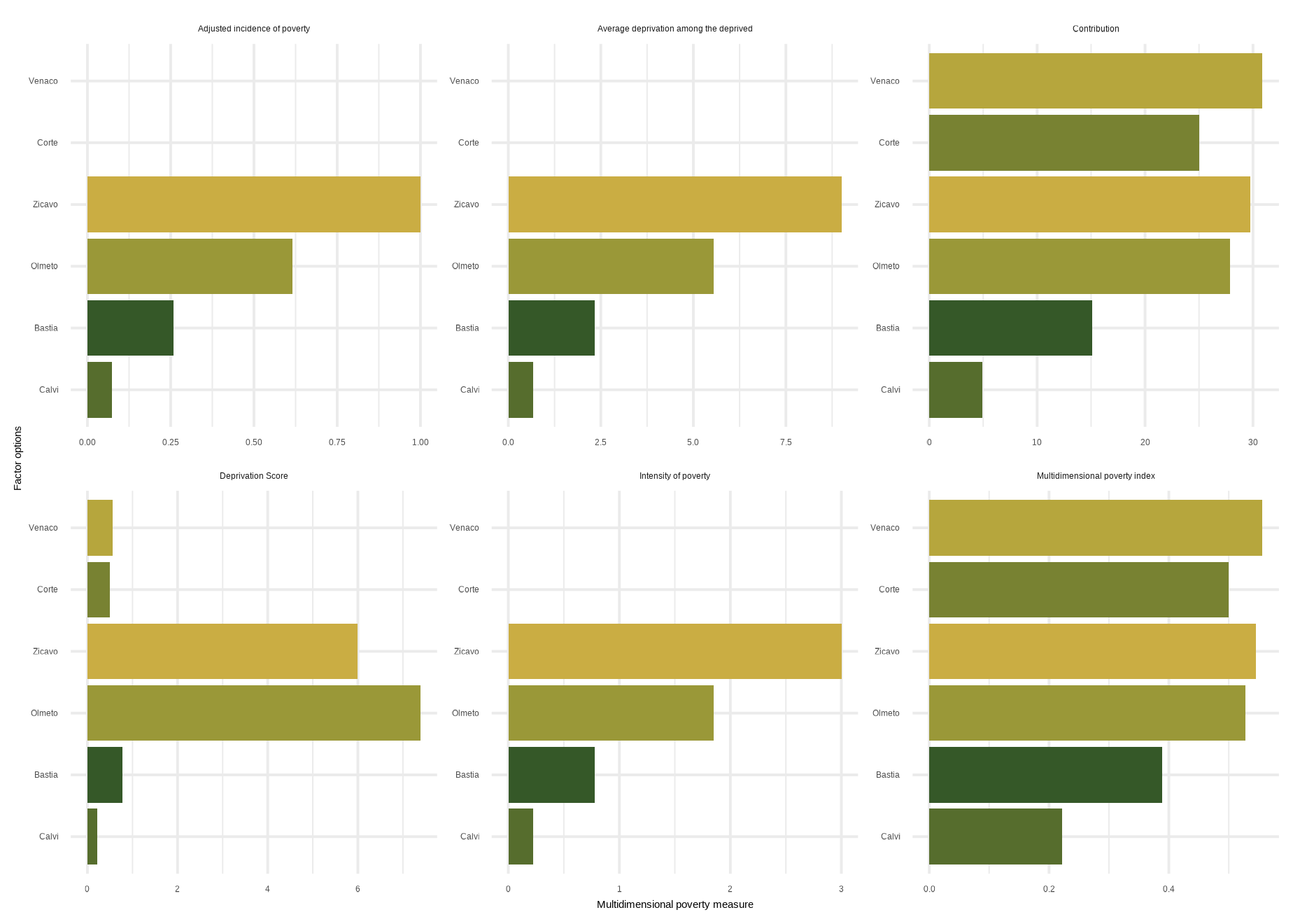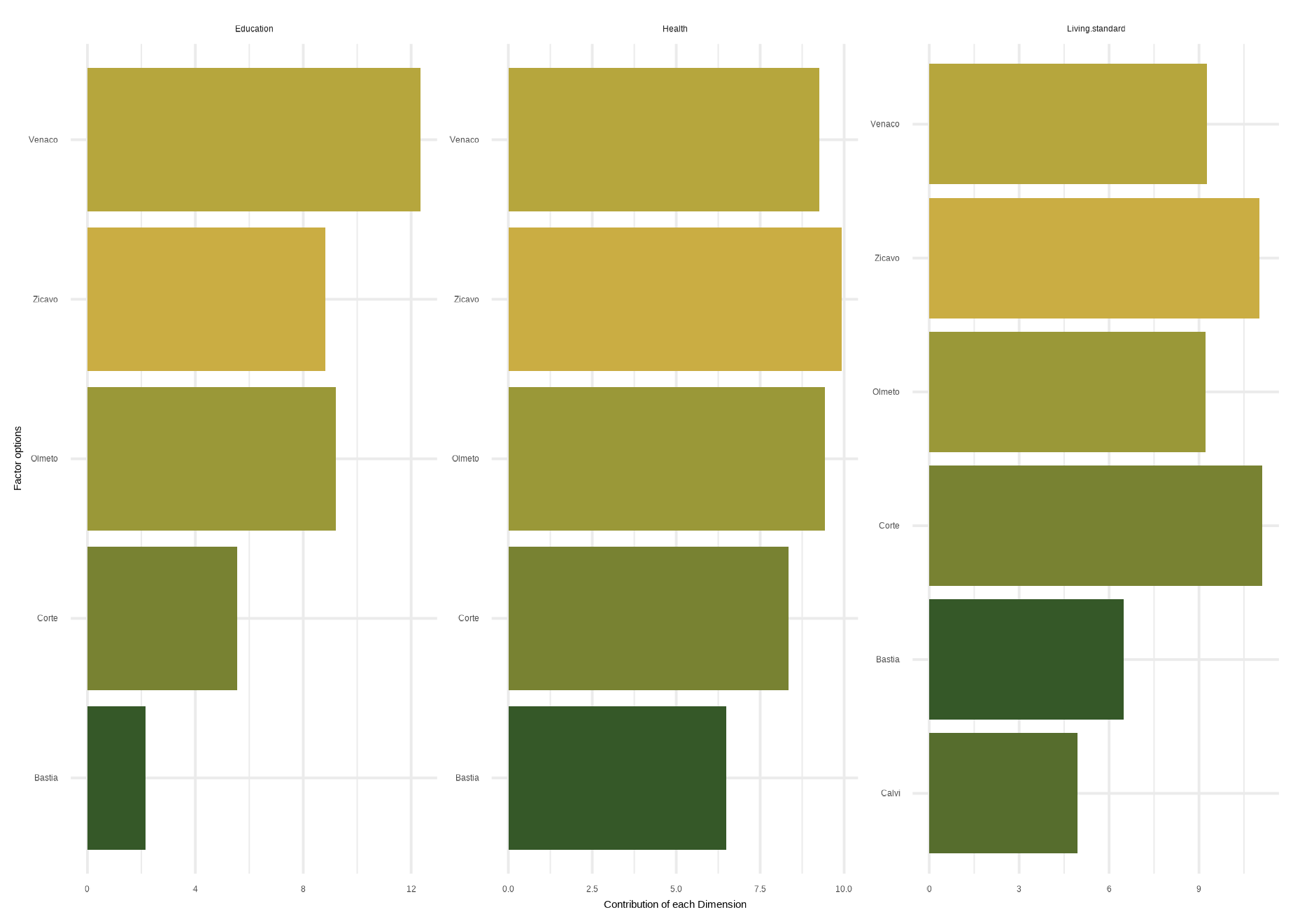 | Analysis | Dimension | Bastia | Calvi | Corte | Olmeto | Venaco | Zicavo | National |