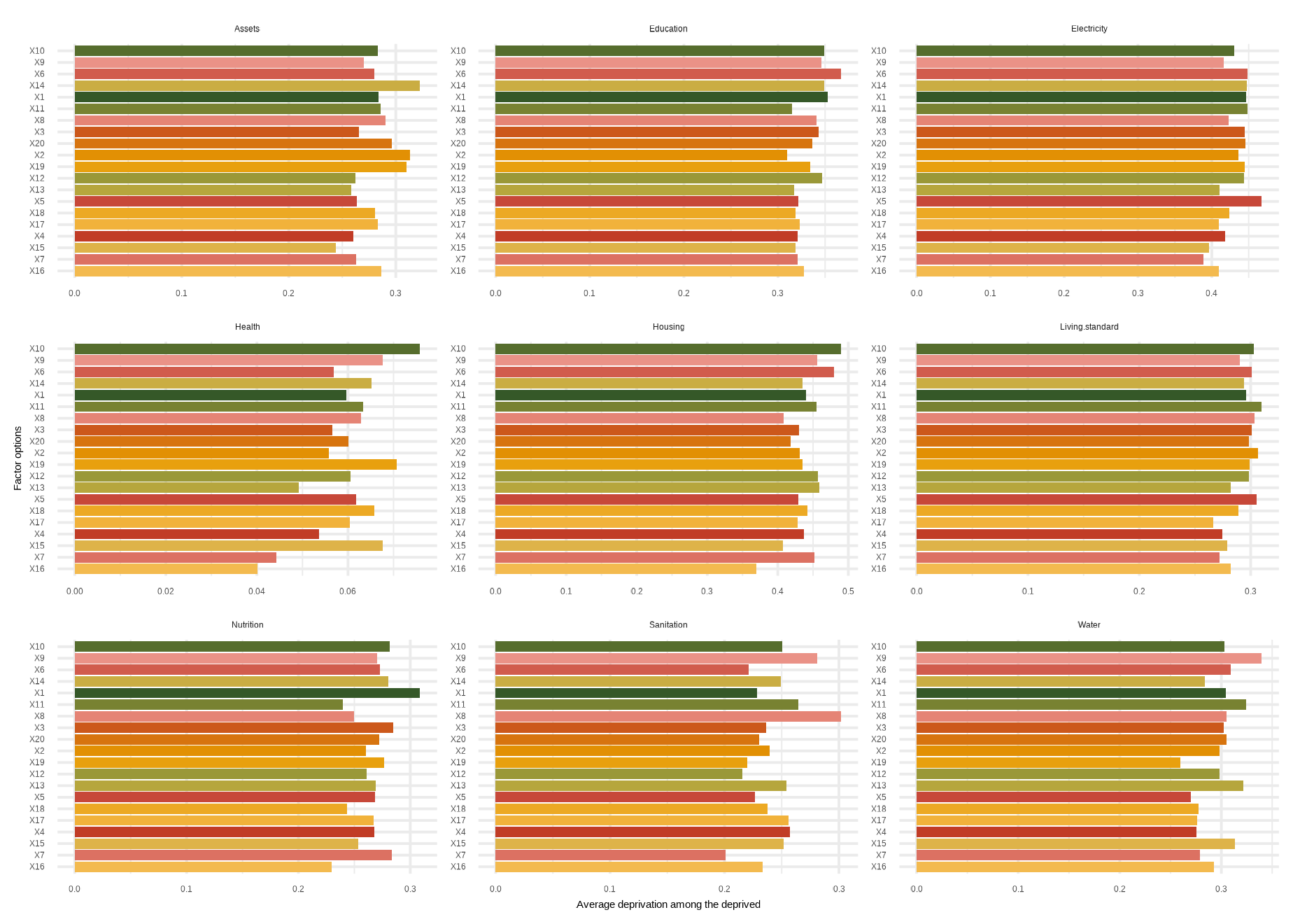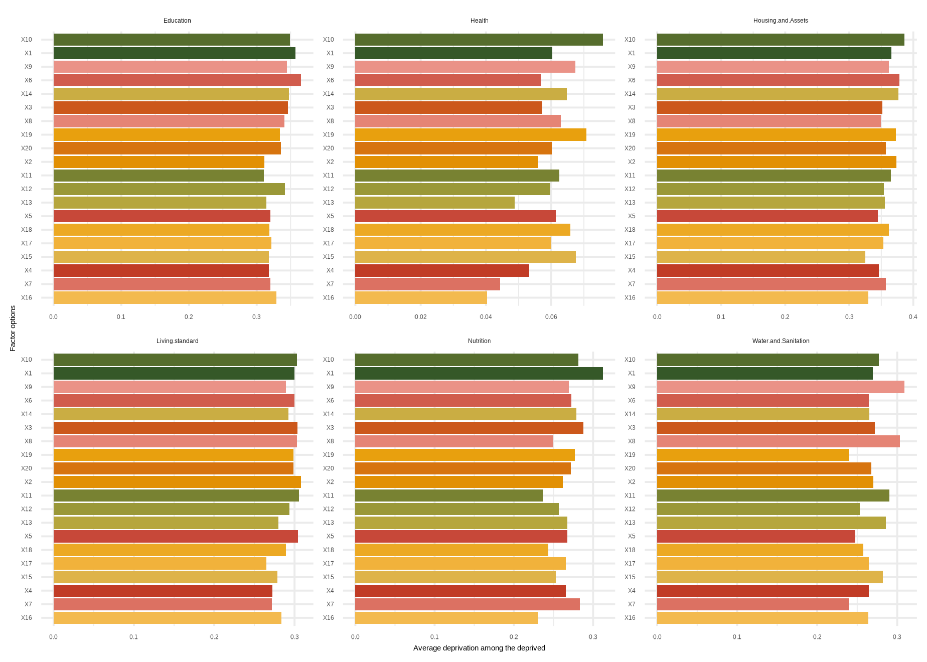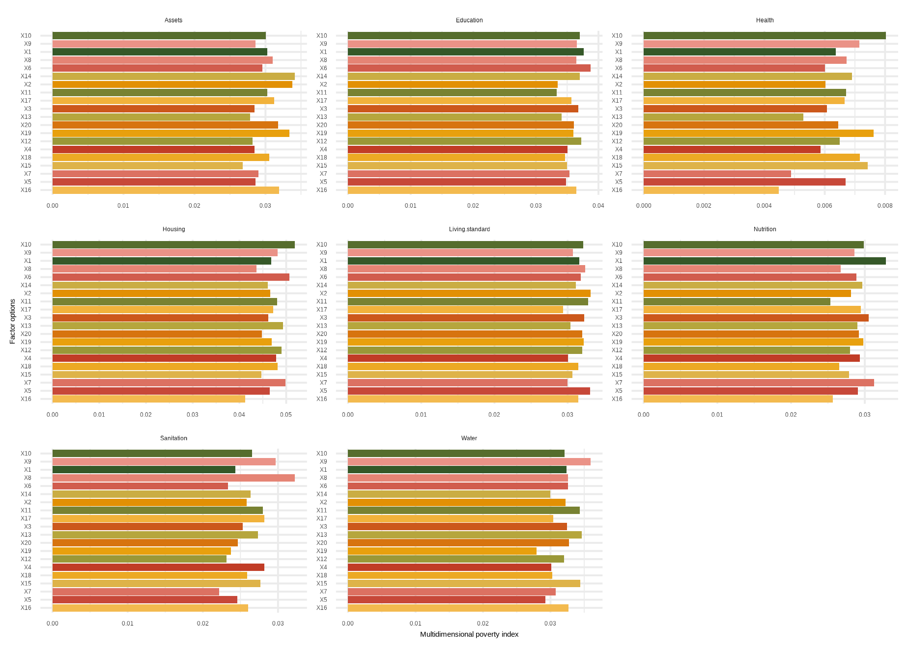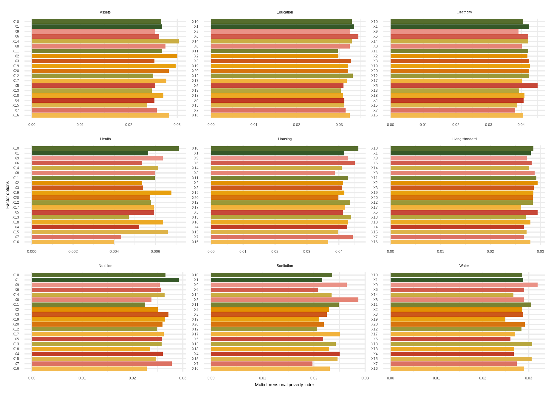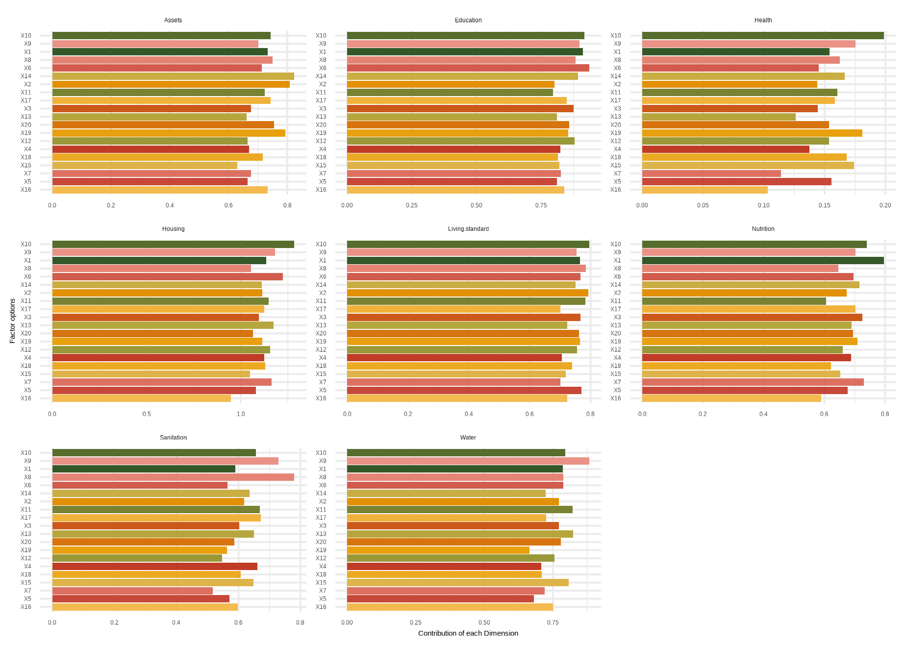 mdpi( data, dm, Bar = 0.4, id_addn = NULL, Factor = NULL, plots = NULL, id = c(“Health”, “Education”, “Living standard”), id_add = “Social security”, id_add1 = “Employment and Income”)