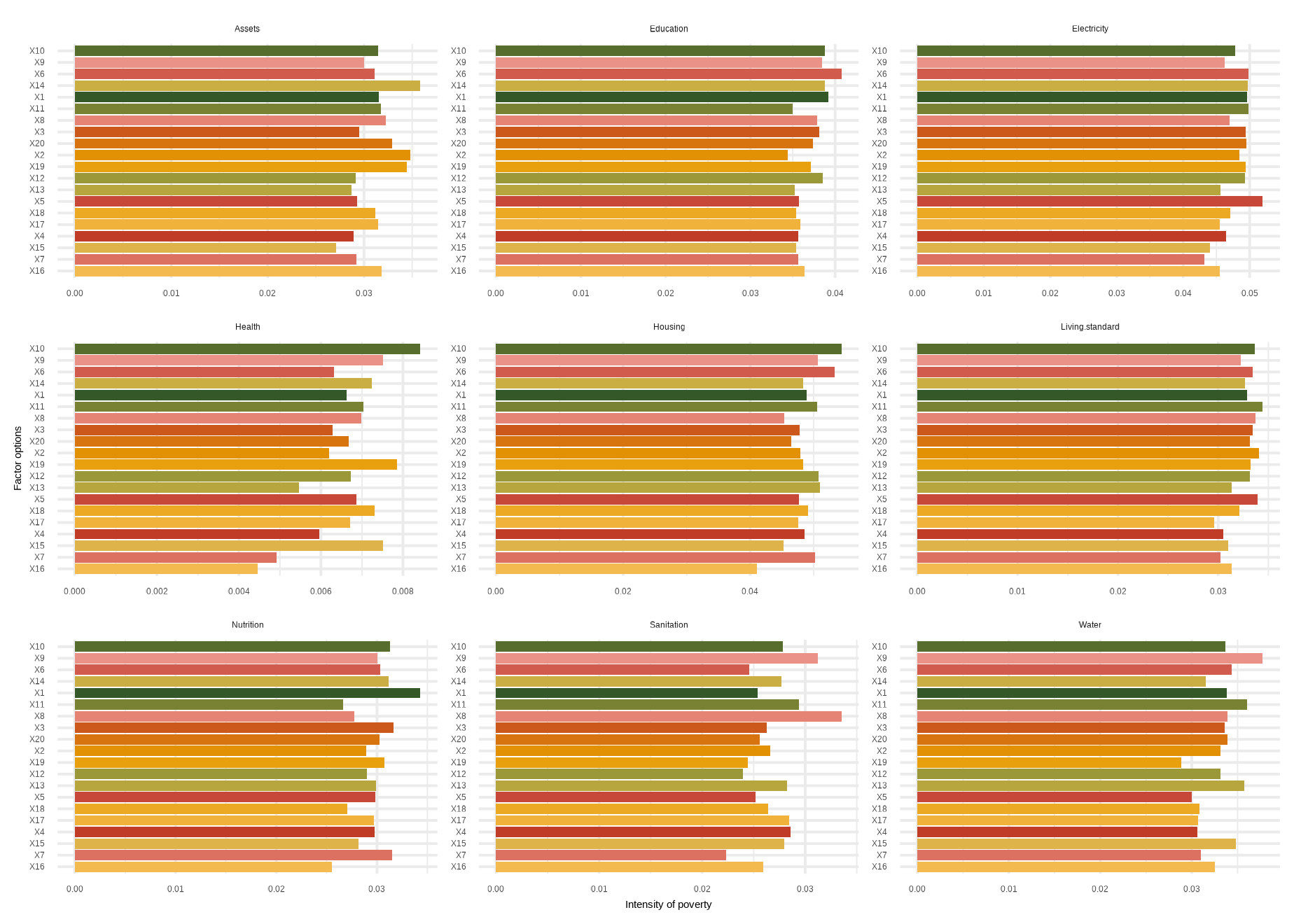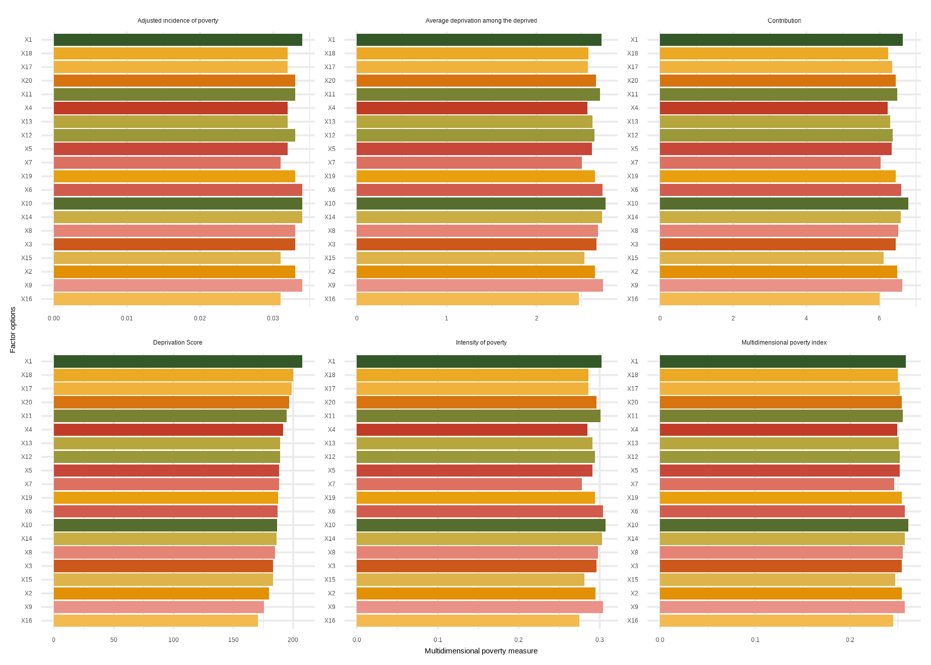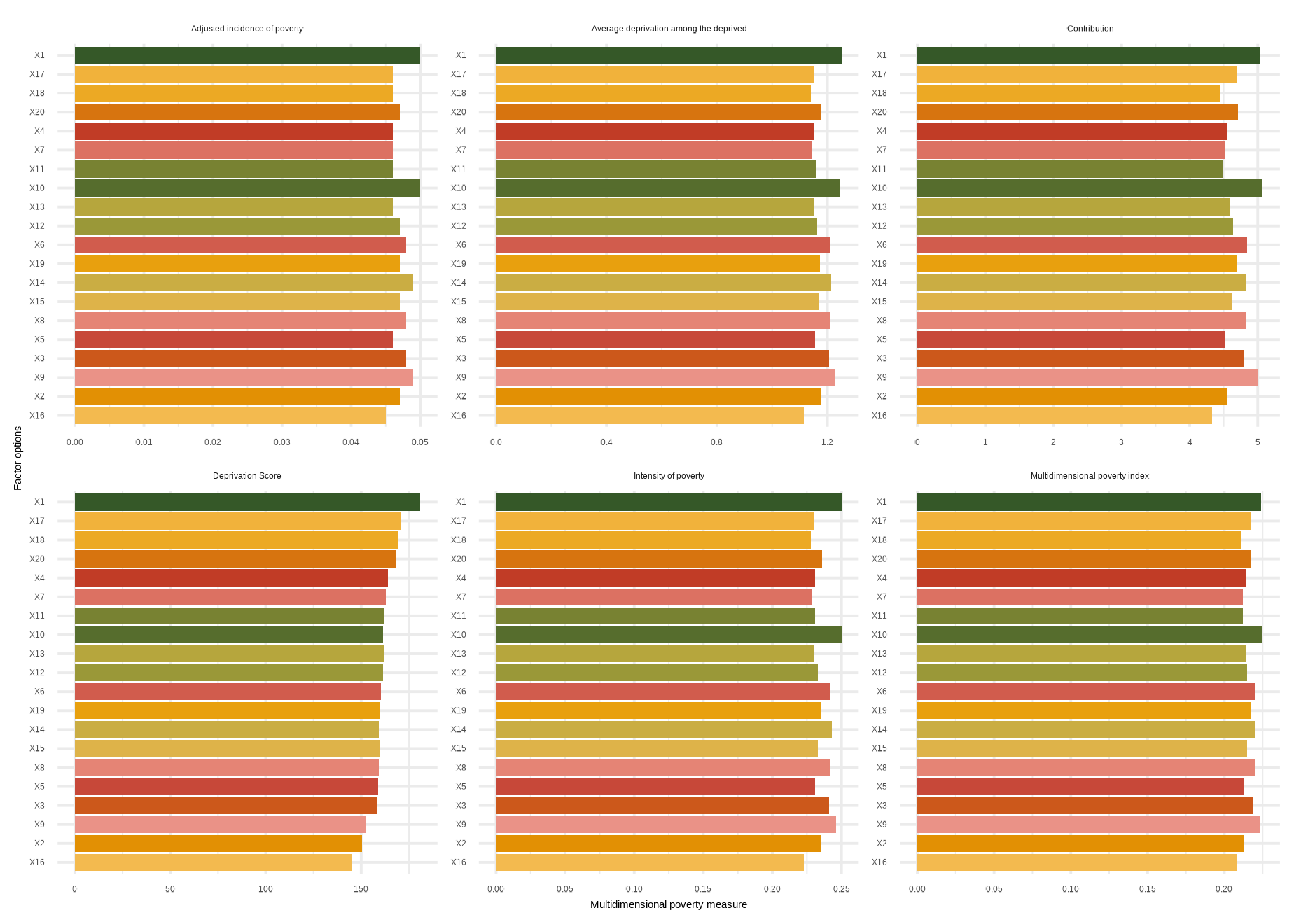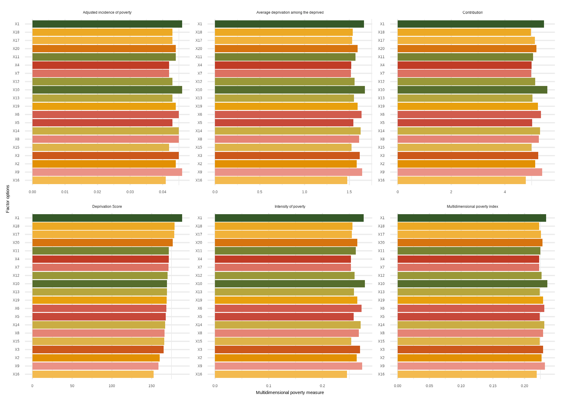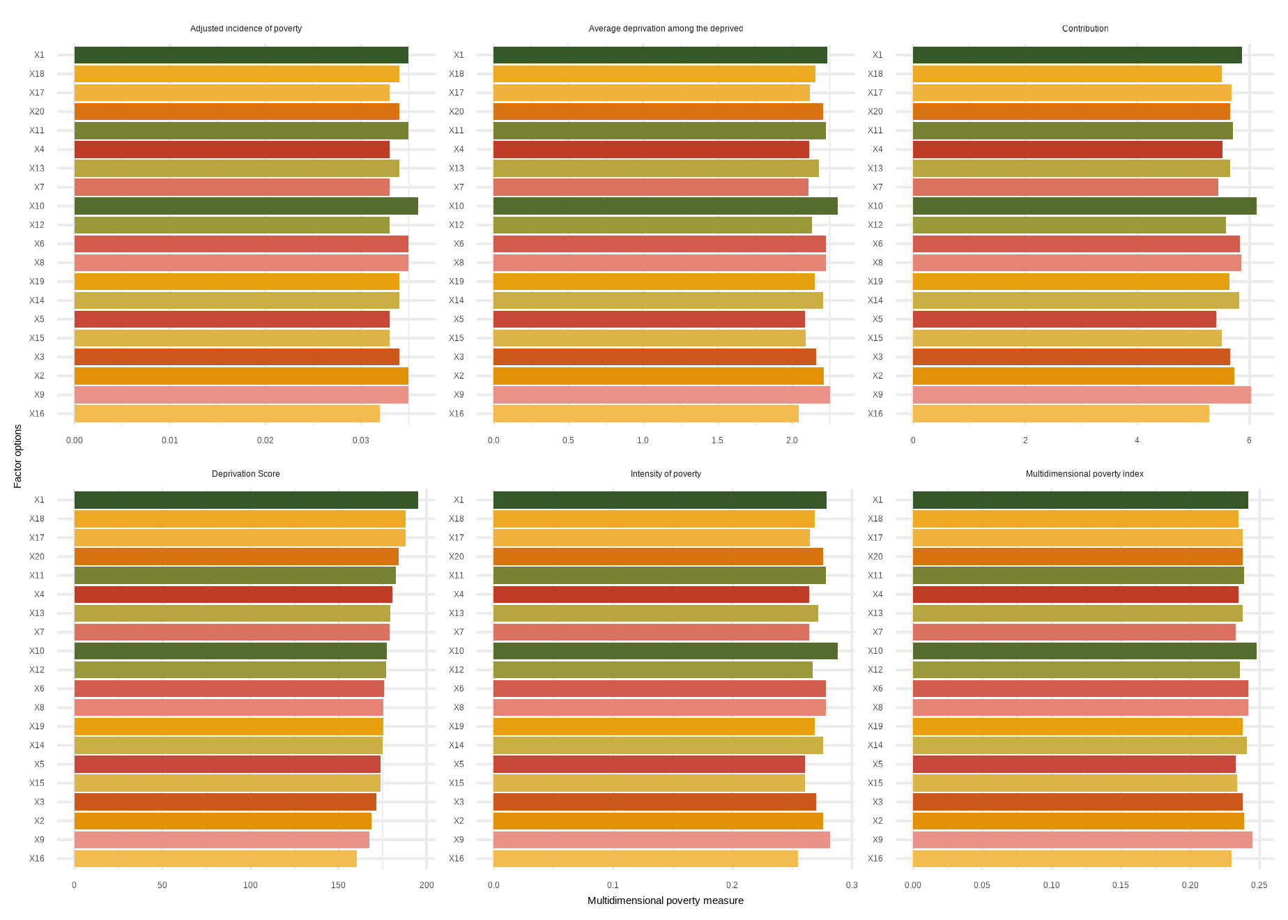 mdpi( data, dm, Bar = 0.4, id_addn = NULL, Factor = NULL, plots = NULL, id = c(“Health”, “Education”, “Living standard”), id_add = “Social security”, id_add1 = “Employment and Income”)