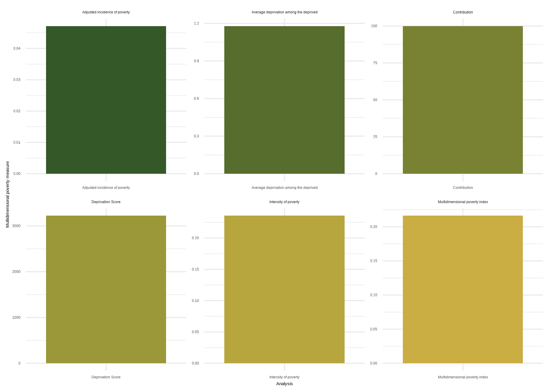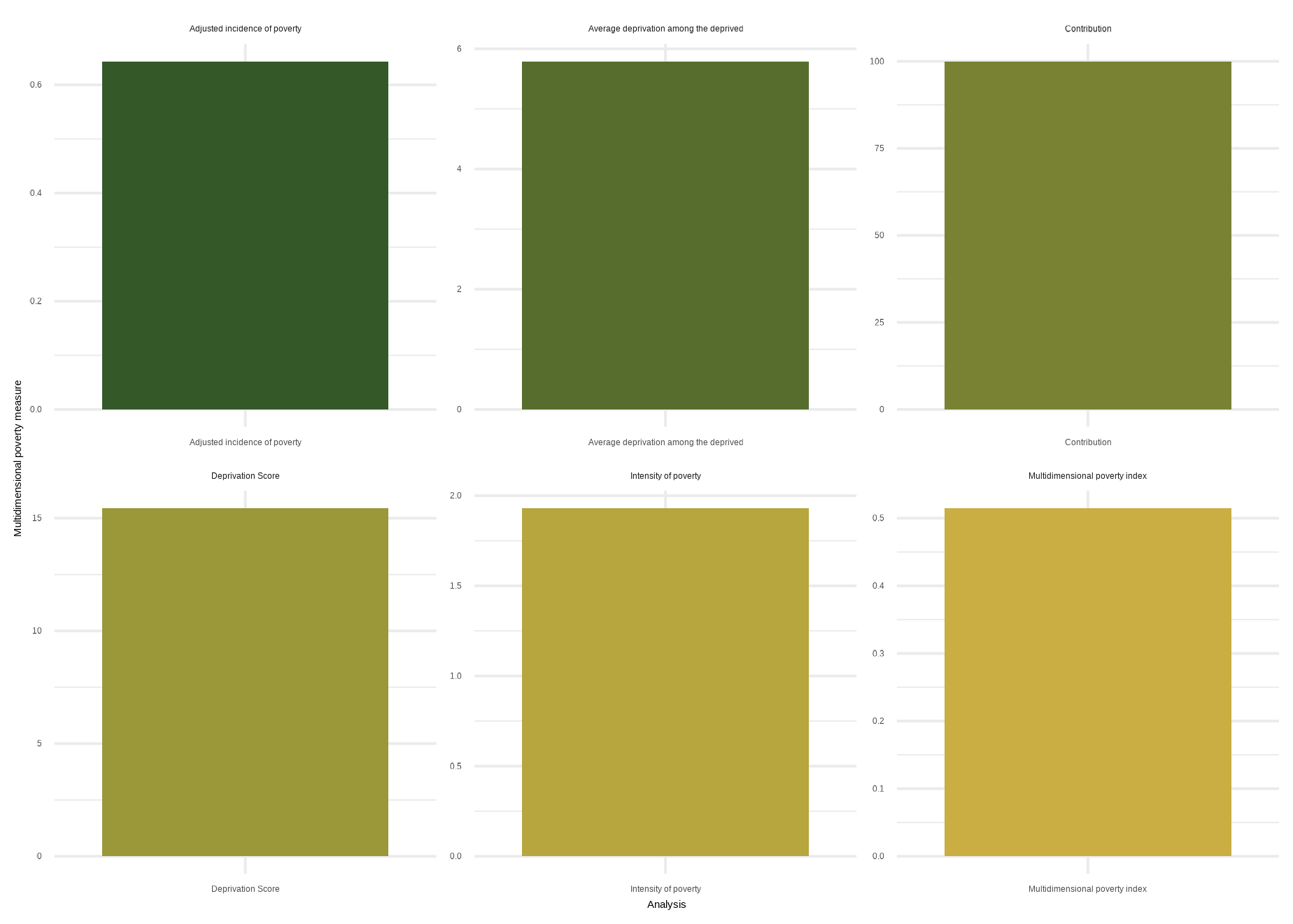 | Intensity of poverty | Health | 0.3333 | 0.0000 | | 0.6250 | | 1.0000 | 0.6458 |