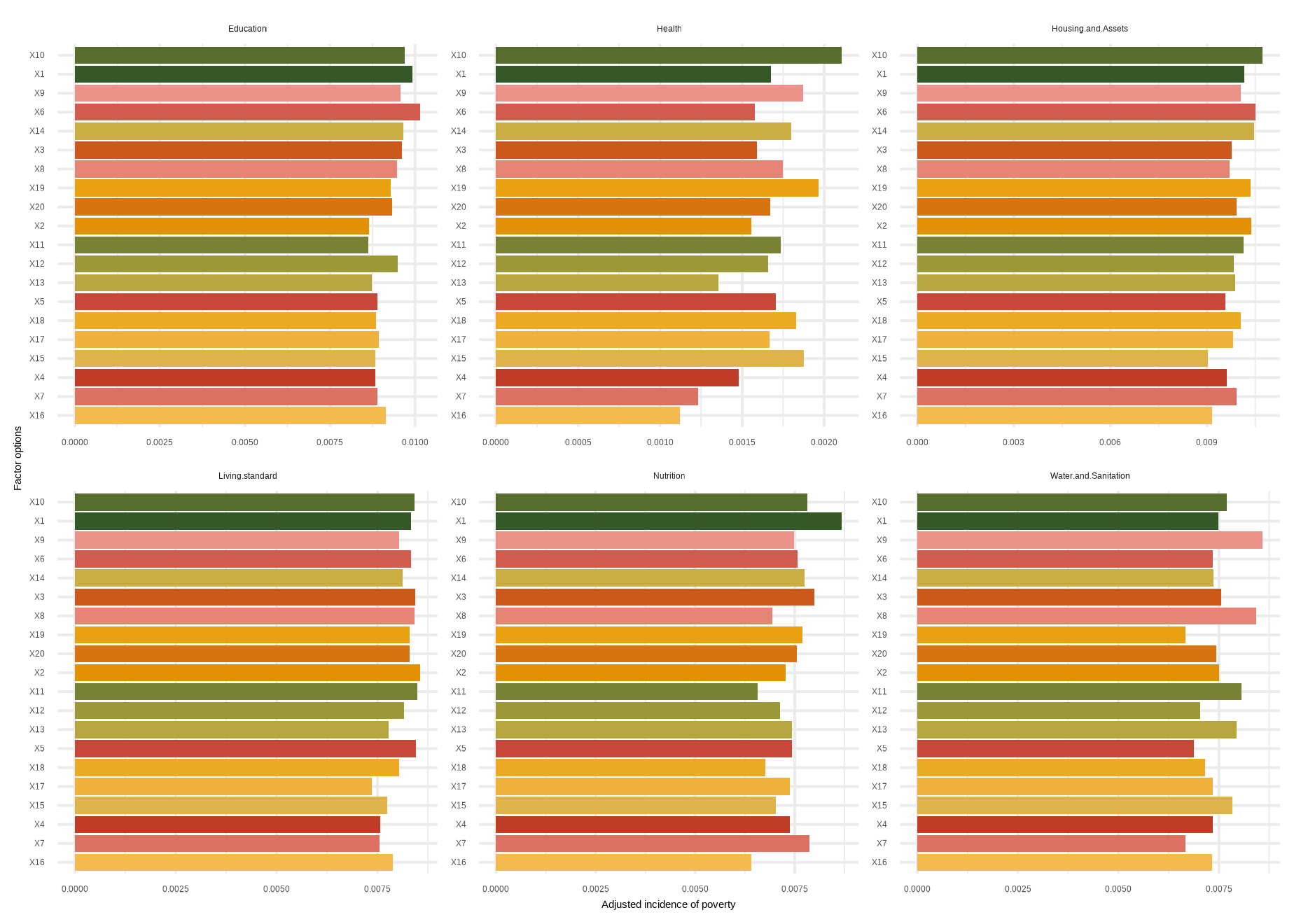 | Adjusted incidence of poverty | Living.standard | 0.1111 | 0.0741 | | 0.2037 | | 0.3704 | 0.2338 |